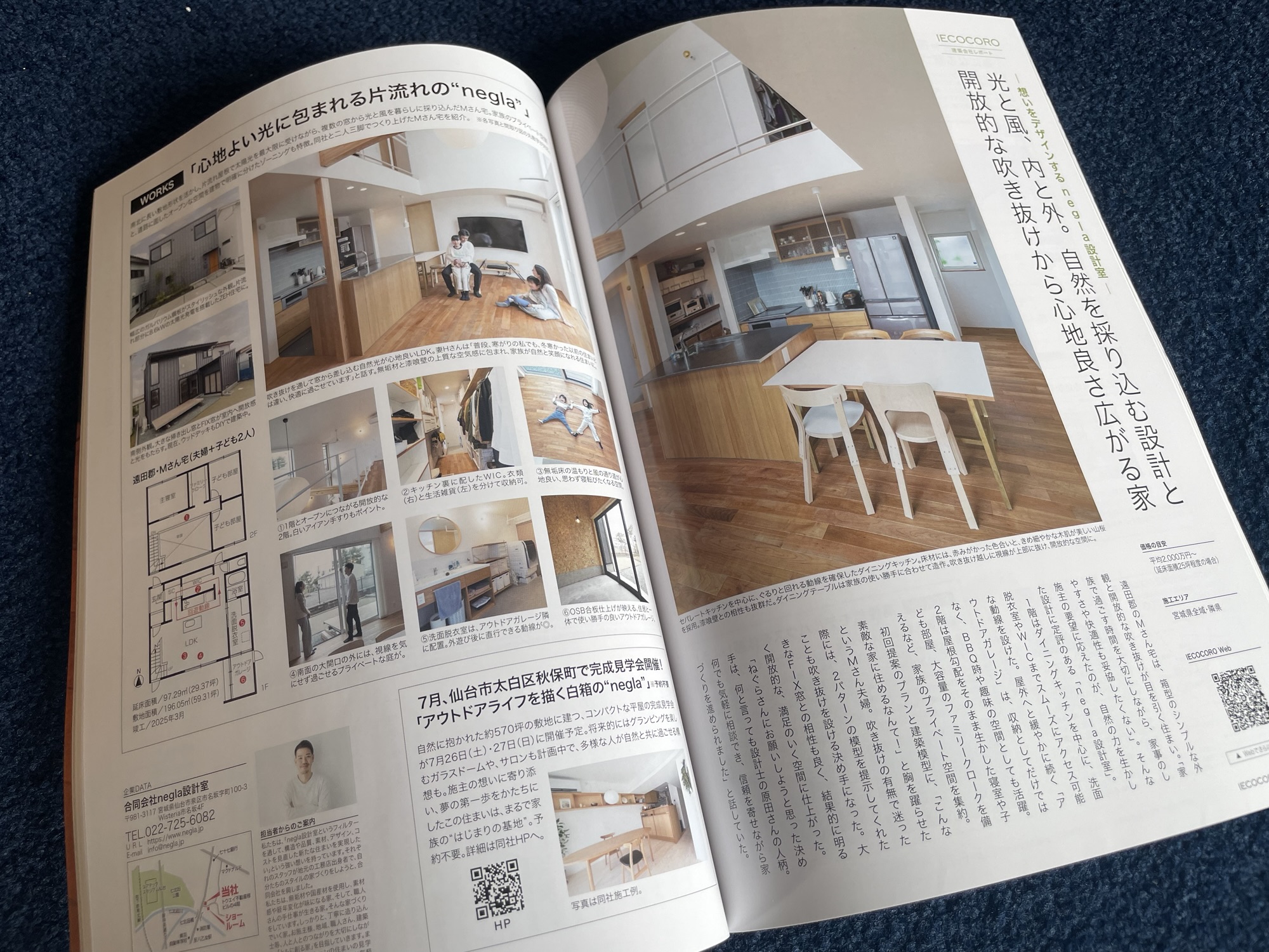 2025年2月10日に求人ジャーナルから発売されました「IECOCORO 宮城で建てる注文住宅」2025夏秋号、P64.65にて、当社negla設計室の住宅事例が紹介されました。