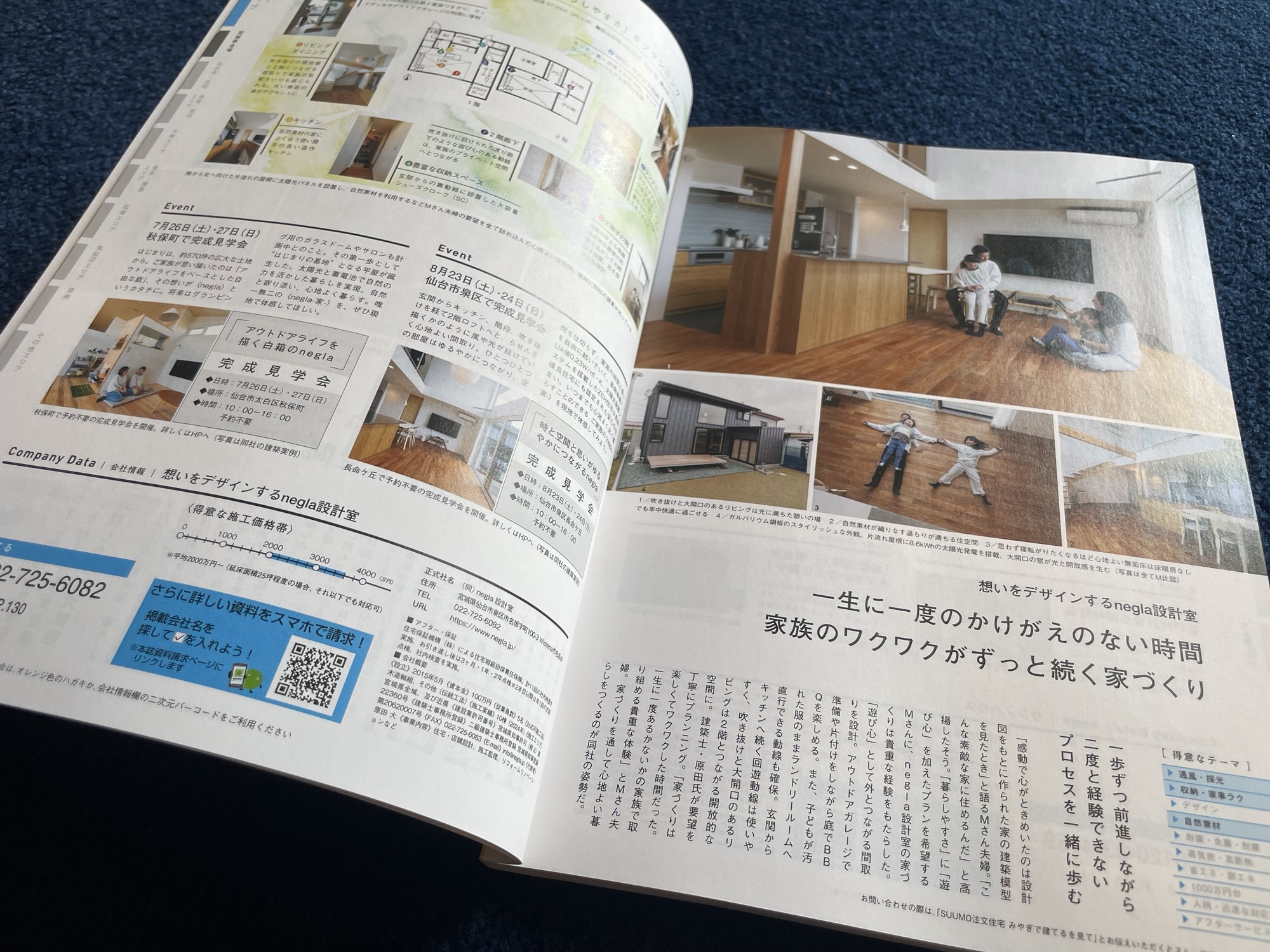 2025年6月21日にリクルートから発売されました「suumo注文住宅 みやぎで建てる」2025夏秋号にて、当社negla設計室の住宅事例が紹介されました。
