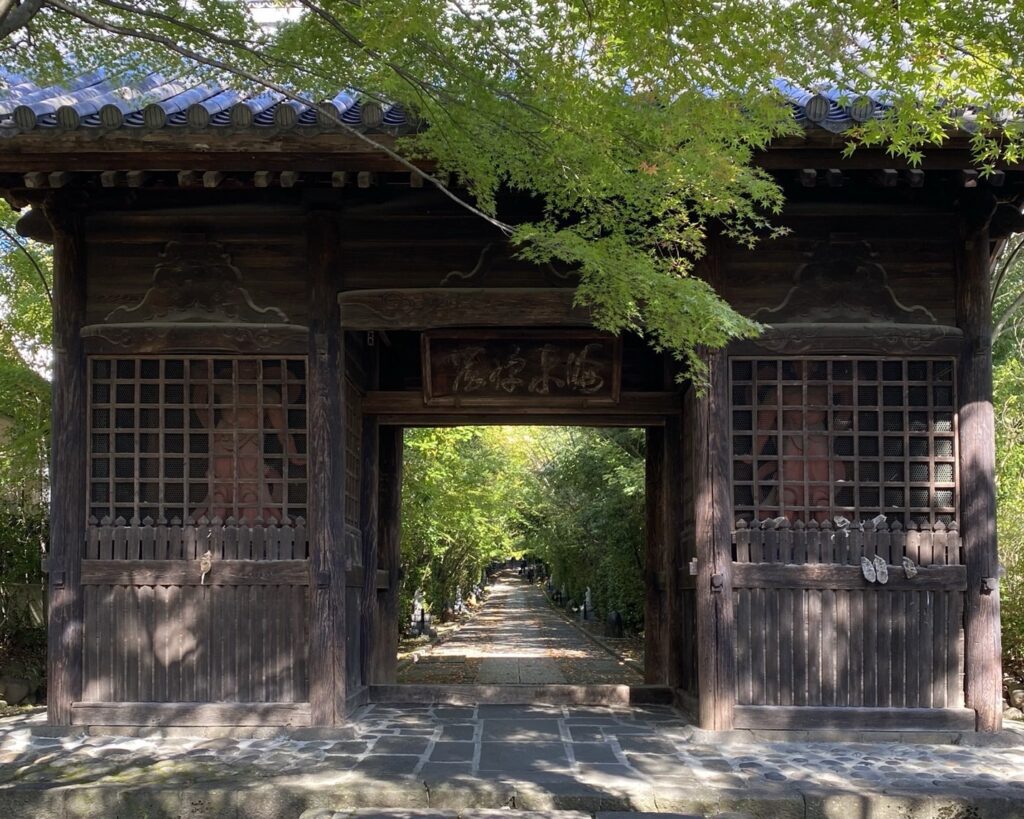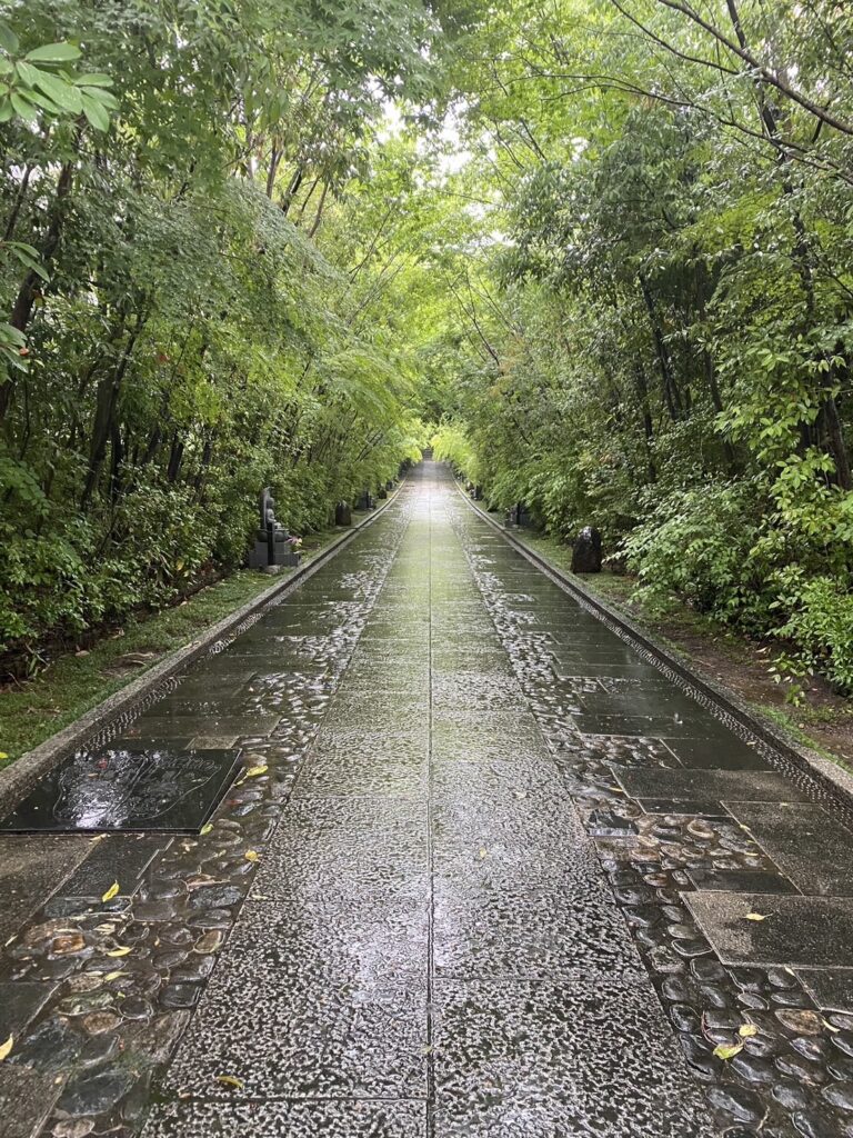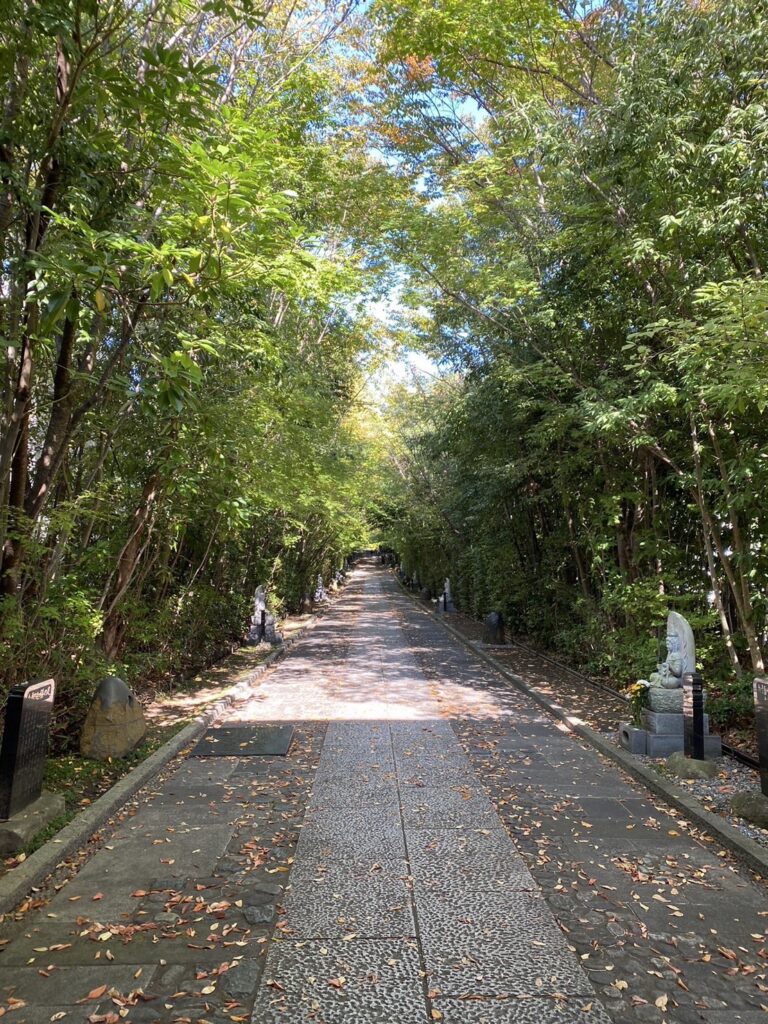 歴史ある山門を抜け本堂へと続く参道は、緑と静寂に包まれた神秘的な道になっています。晴れの日は木の葉の間から光が射しこみ綺麗ですが、私は雨の日がお気に入りなので雨の日を選んで行くことも多いです。