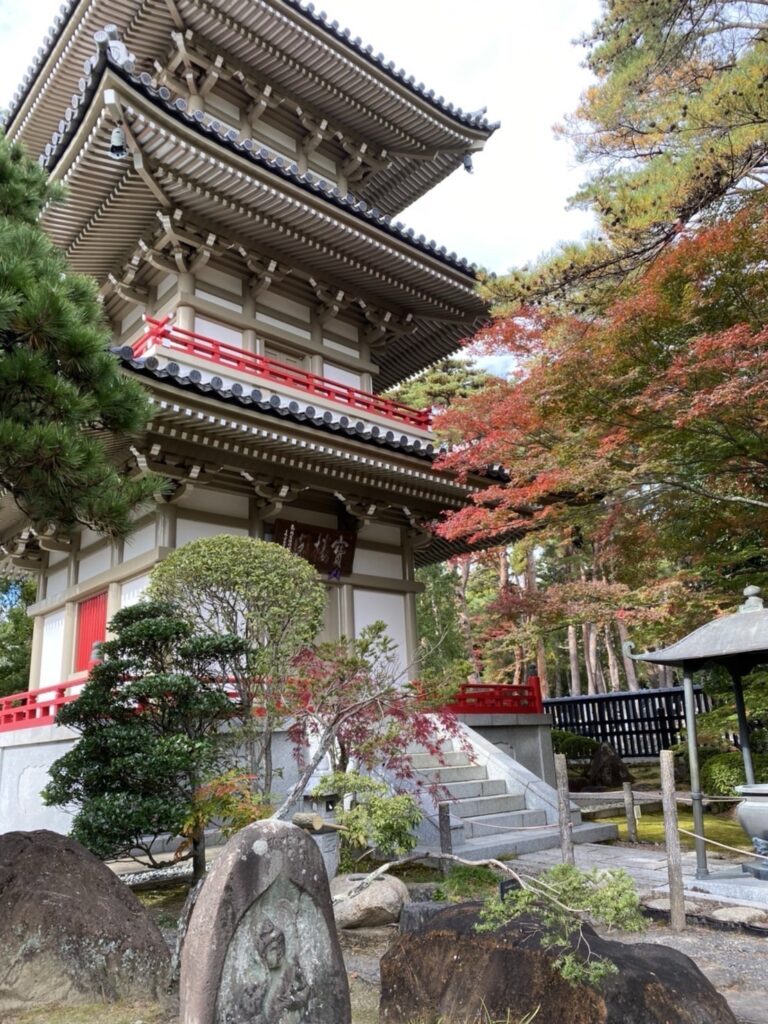 秋の少し冷えた澄んだ空気の中で見る紅葉と三重塔の組み合わせは何度も見に行きたくなってしまうほど綺麗なんです。
