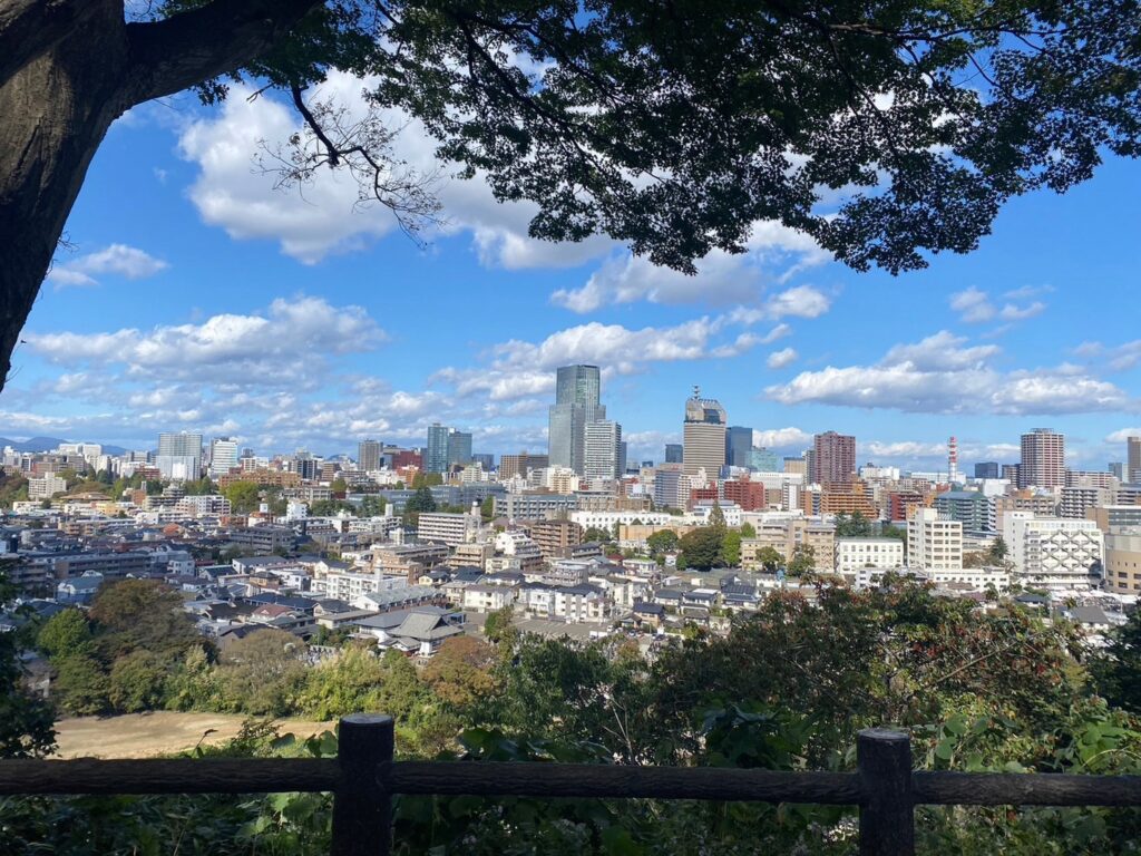 また、少し長く急な石段を上がりきると仙台の街を一望することができ