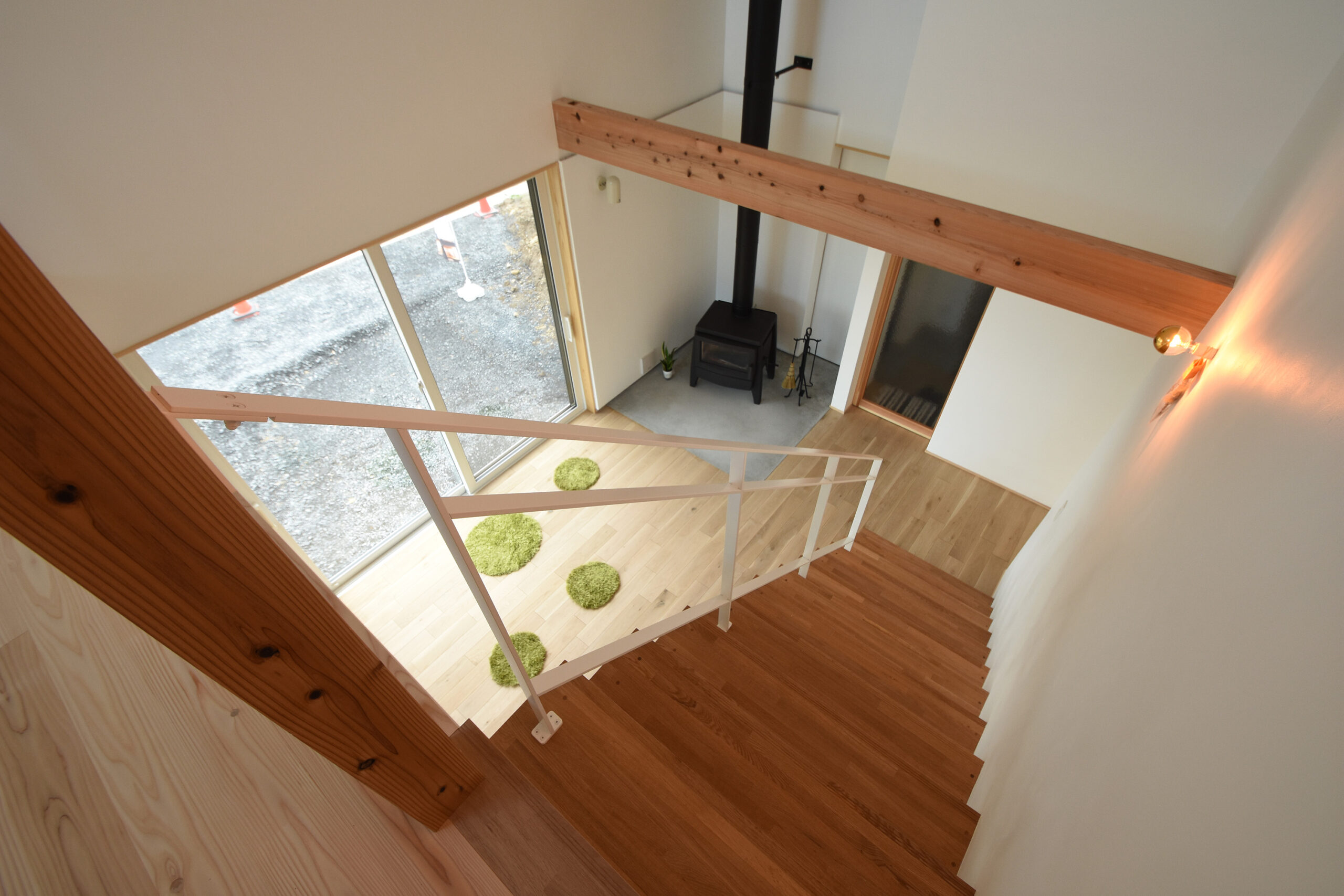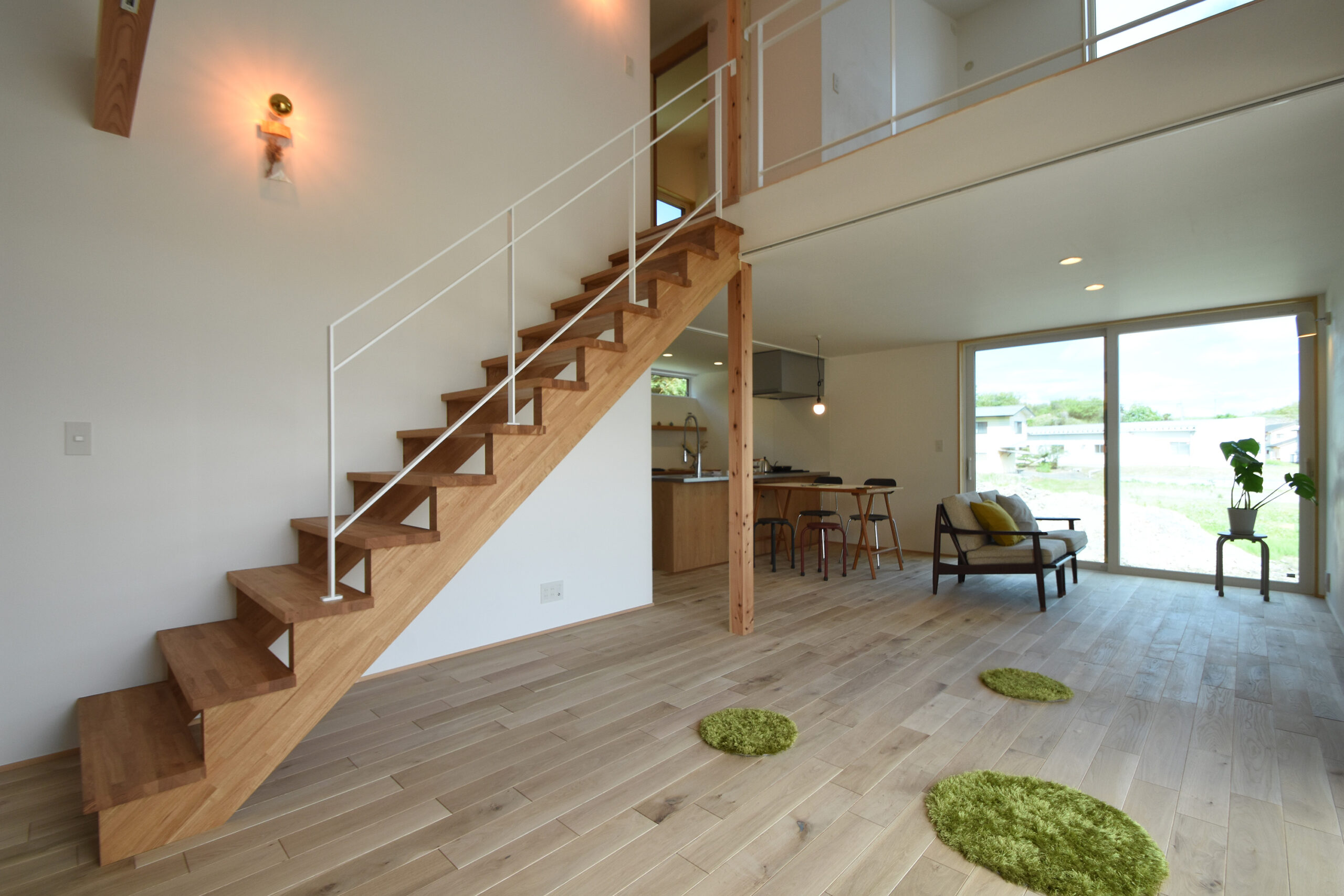 階段と吹き抜けが、空間にリズムを生む開放的なリビング