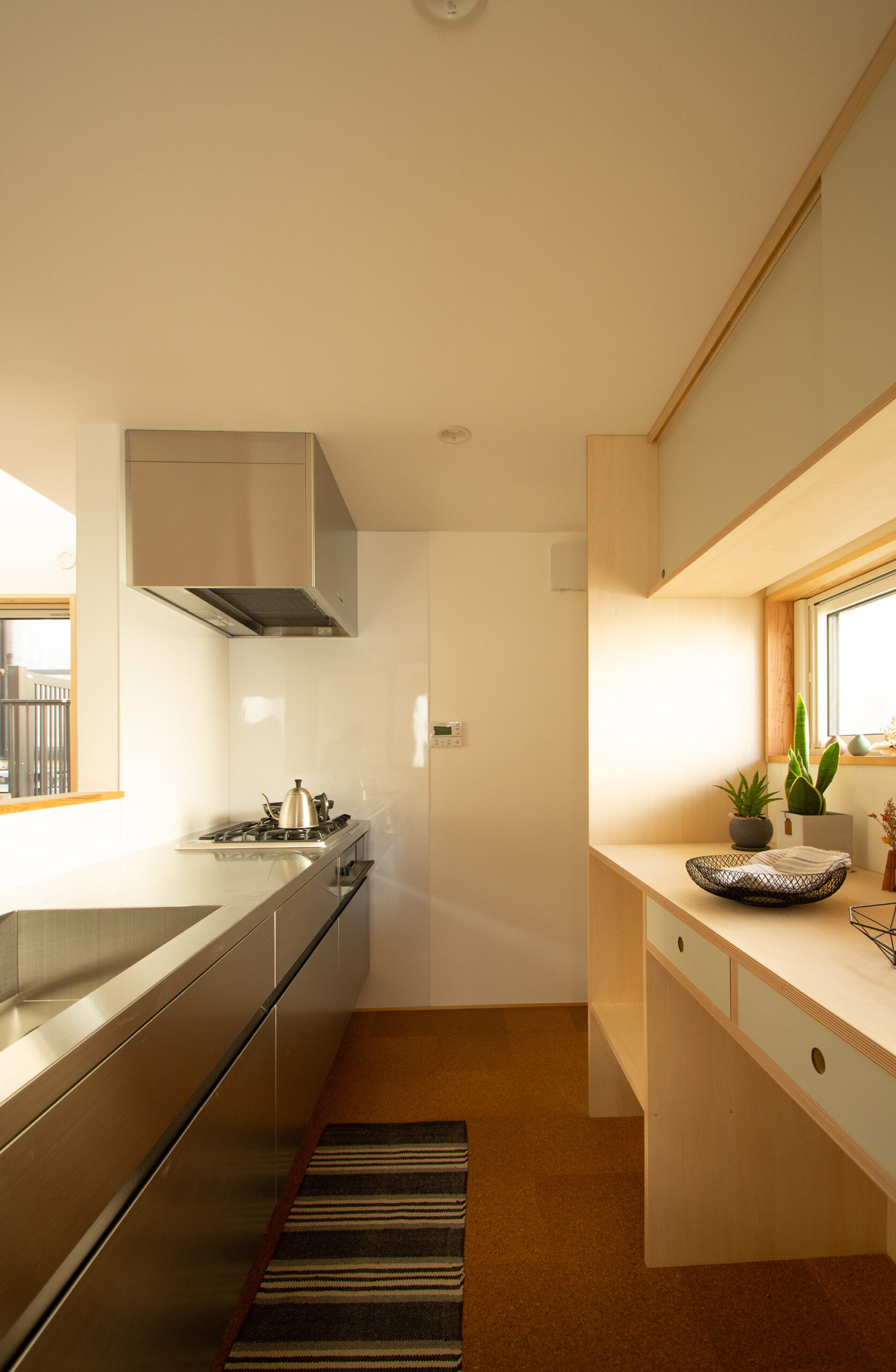 背面の造作棚とともに、心地よさを追求したキッチン