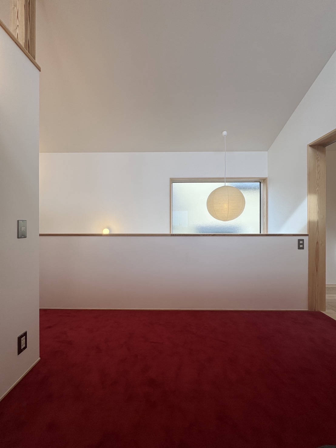 空間に鮮やかさを添える赤いカーペットが印象的な仕上がりに