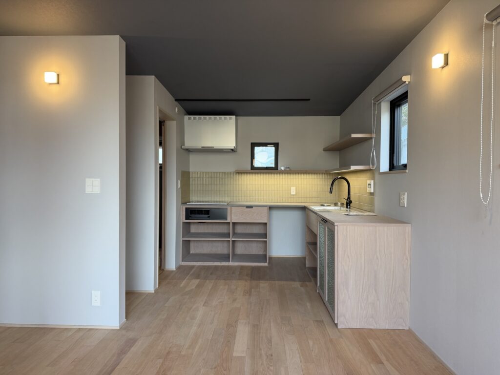 二つ目は、2階ワンフロアに配置した造作キッチン。