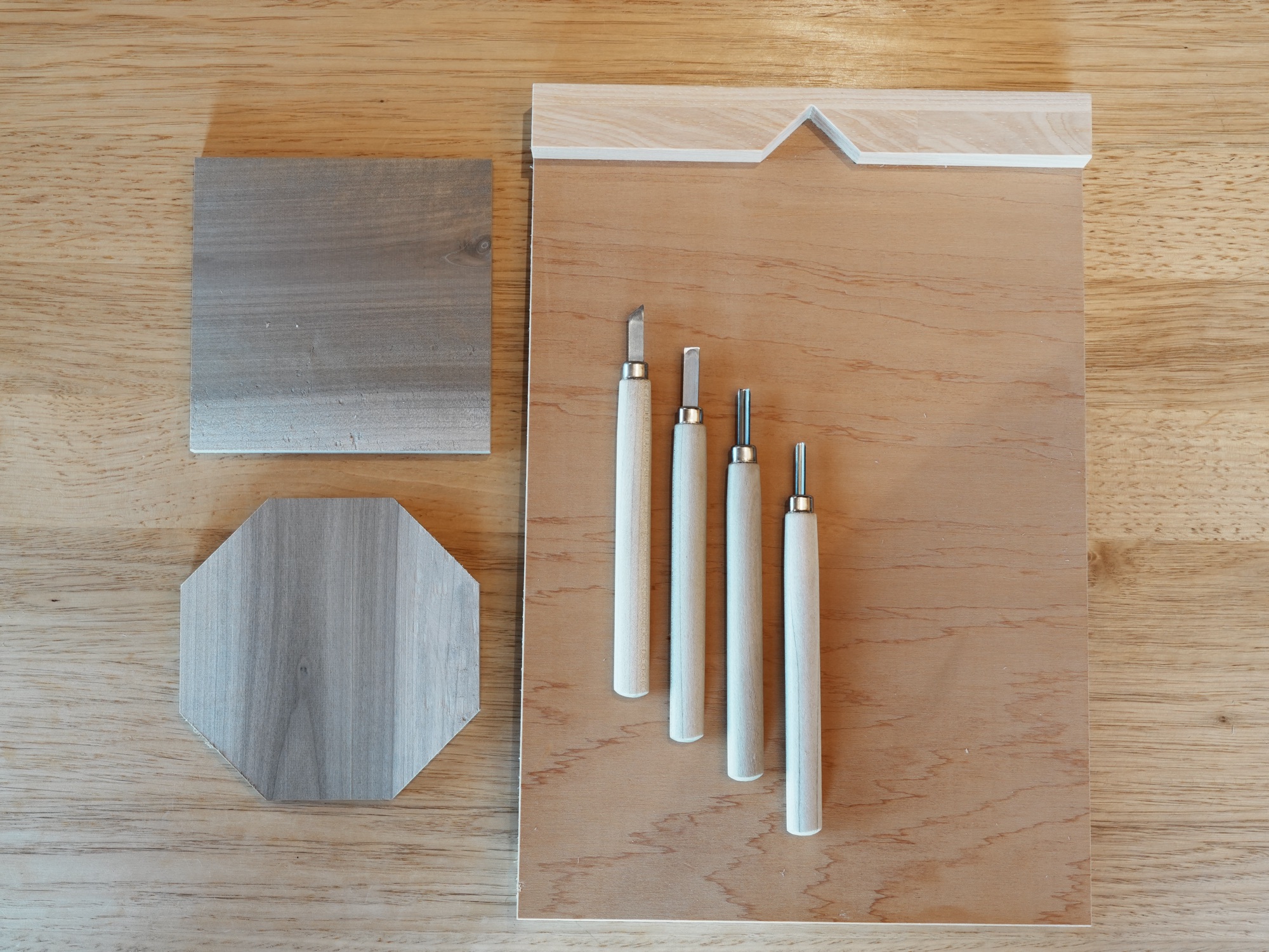 (貸 出)彫刻刀、作業台、ゴム手袋、やすり、仕上げオイル